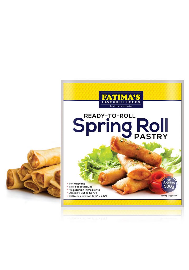 Fatima’s Spring Roll Pastry is thin, delicate, and crisp, providing the perfect wrapper for creating crunchy, golden spring rolls bursting with flavour. | Available in Packs of 24 x 12 pieces Net Weight: 400g